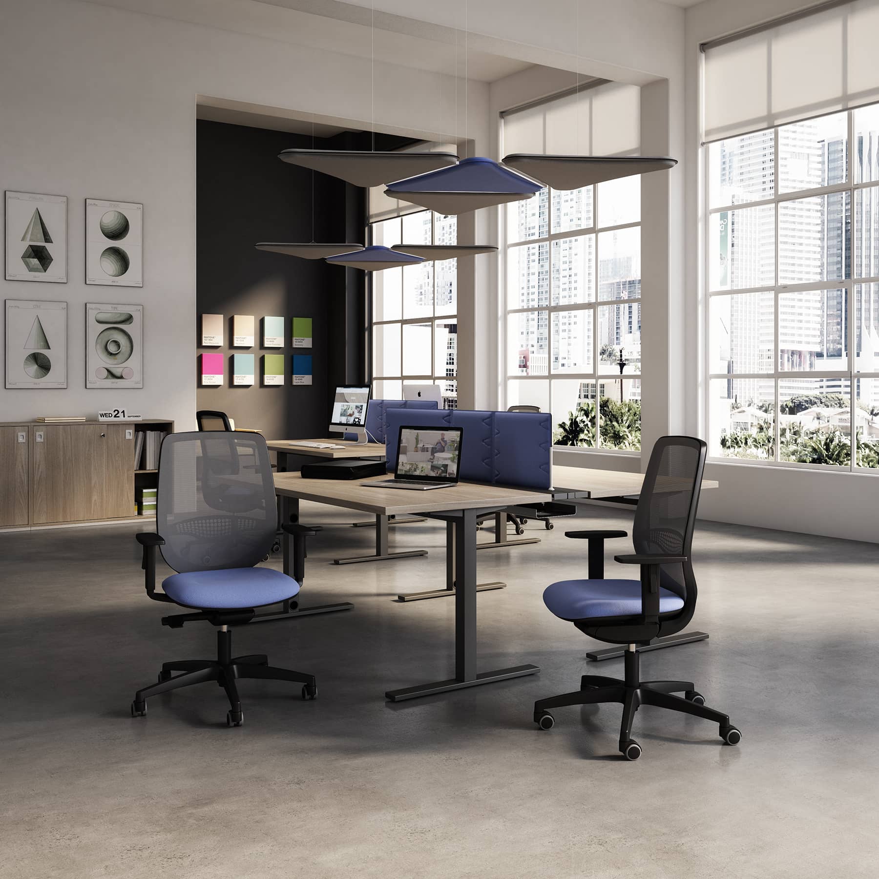 Delovni stol Okay združuje udobje in ergonomske lastnosti: nastavljivo višino, nadzor nagiba, naslonjala za roke in ledveno oporo.